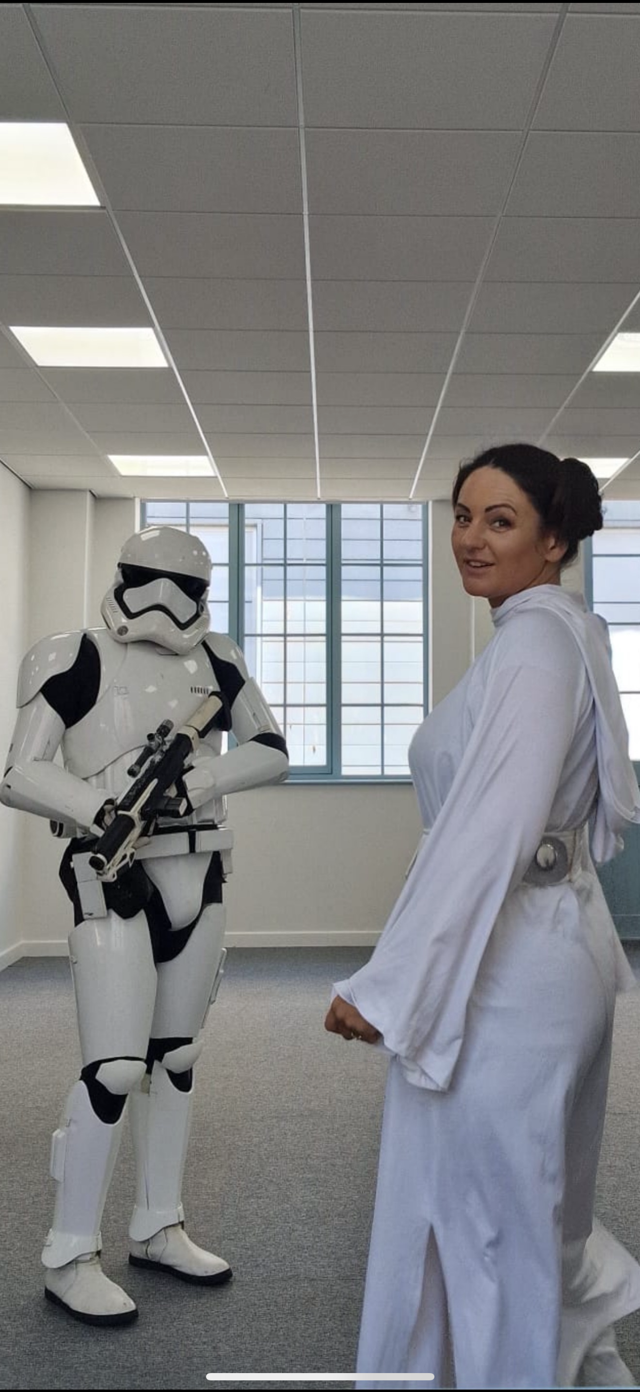 Step into the Star Wars universe with our stunning Princess Leia lookalike.. the fearless leader, rebel hero, and icon of strength and grace..Perfect for themed parties, corporate events, retail activations and sci-fi celebrations..our Leia lookalike captivates guests of all ages with her commanding presence.